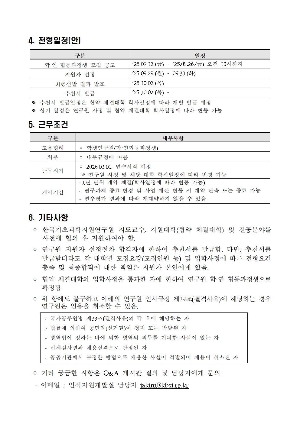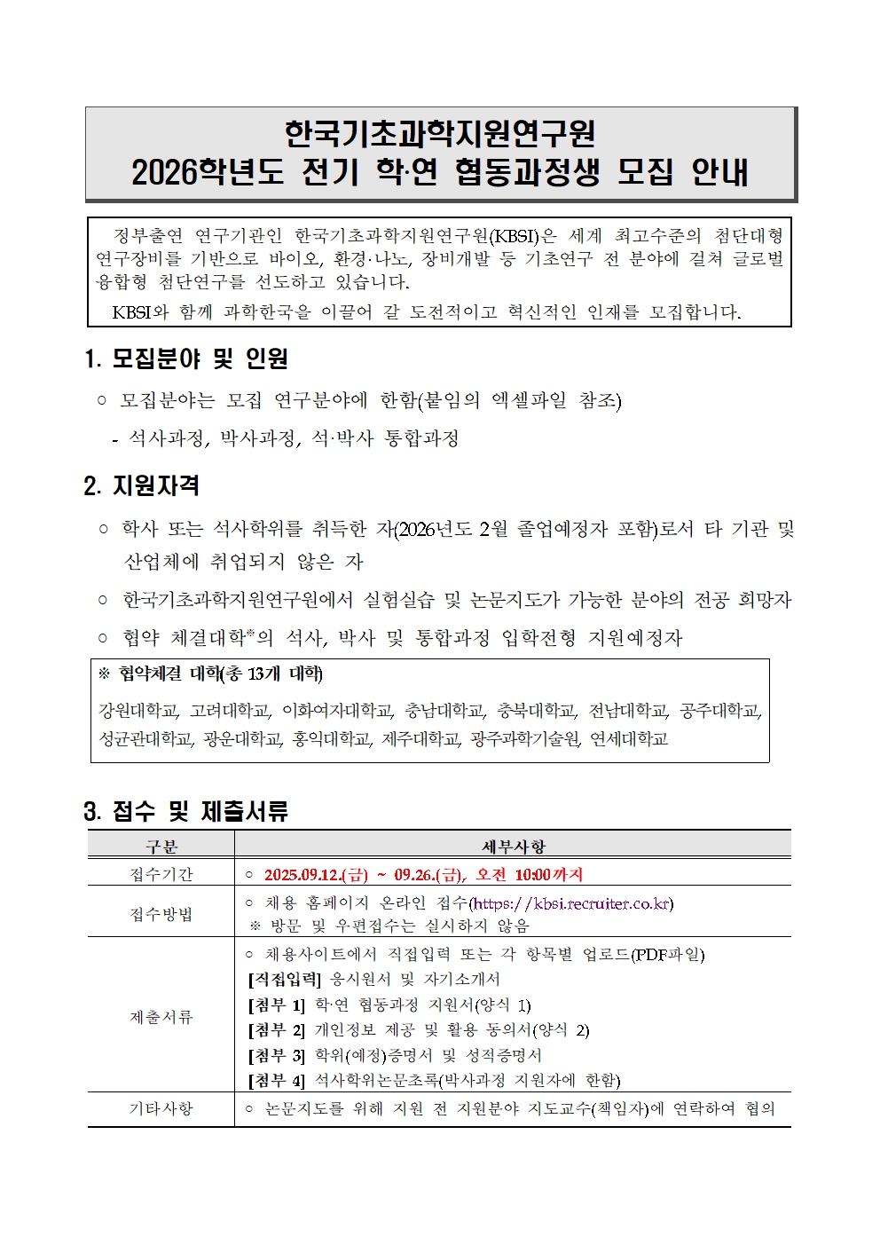 2026학년도 전기 학·연 협동과정 학생연구원 모집 공고