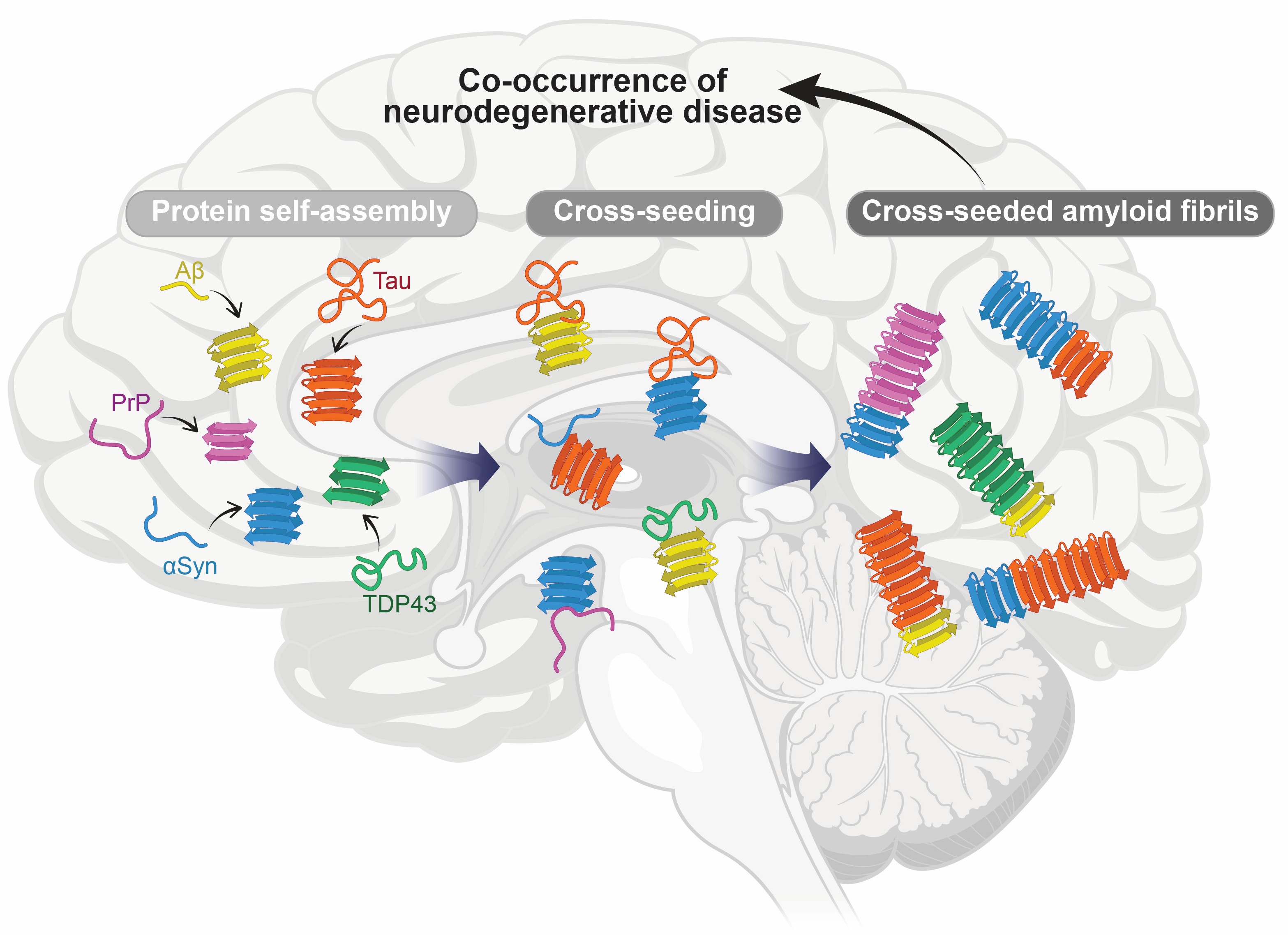 예를 들어, 알츠하이머병의 아밀로이드베타(Amyloid-β, Aβ)와 타우병증의 타우(Tau), 파킨슨병을 포함한 알파시누클레인병증의 알파시누클레인(α-synuclein, αSN)은 서로 상이한 단백질이지만, 오접힘과 응집을 통하여 상호작용하여 공병리 현상의 주요 원인으로 작용한다.